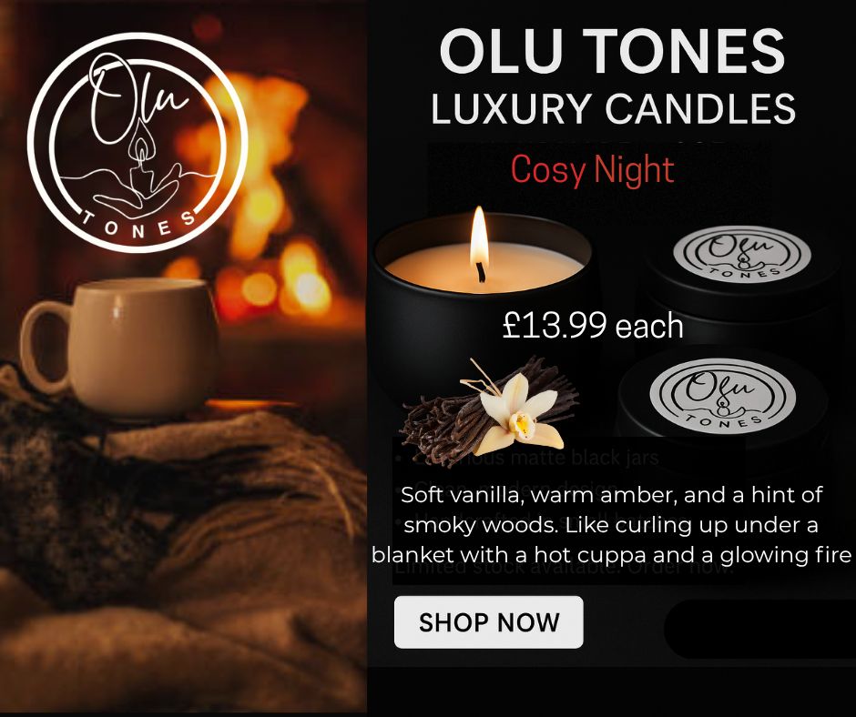Soft vanilla, warm amber and a hint of smoky woods. Like curling up under a blanket with a hot cuppa!